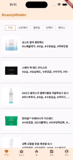 The BeautyMinder project is an app that provides personalized cosmetic recommendations based on the Baumann Skin Type Test. It was developed to offer users reliable cosmetic information and a convenient product management experience. As the lead backend developer, I was responsible for API development, system architecture design, deployment, and frontend integration, overseeing the entire backend system.